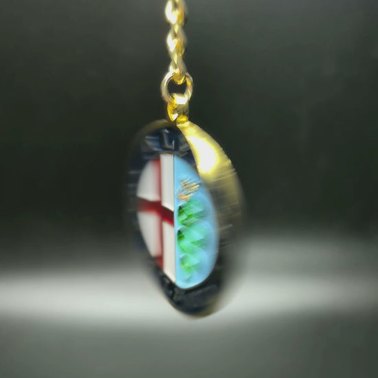 Carry a piece of legendary Italian design and racing heritage with this exquisite vintage Alfa Romeo keychain. Featuring the iconic circular emblem, divided into the red cross of Milan and the Visconti serpent devouring a Saracen. This keychain is a true testament to automotive artistry.