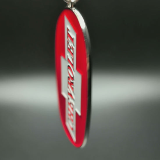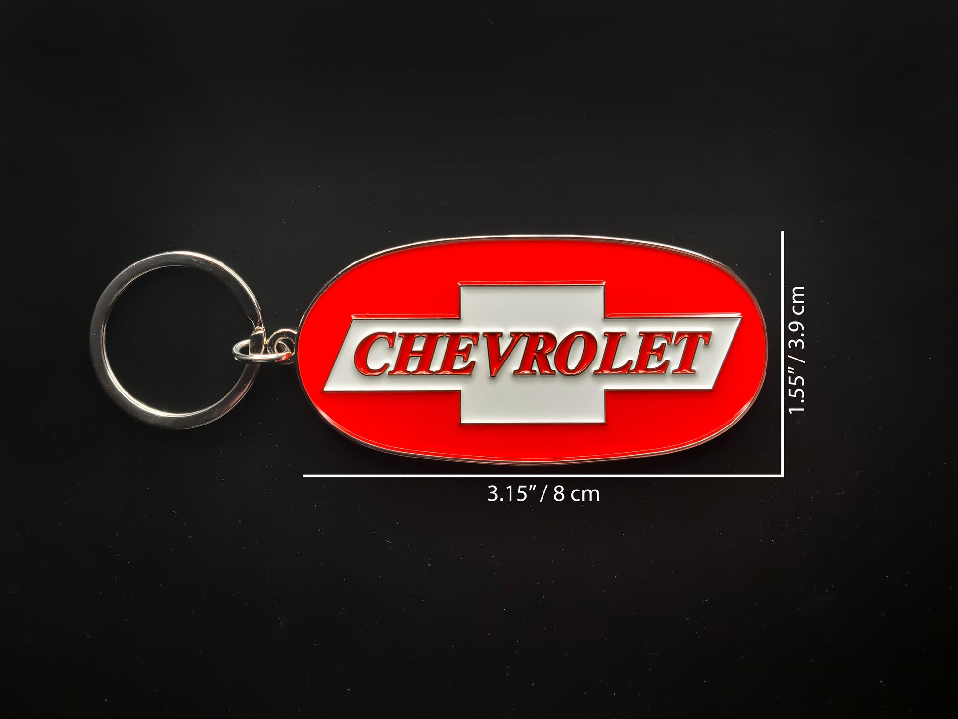 This double-sided metal keychain features the vintage Chevy logo, showcasing the brand's heritage and quality. The keychain is attached to a durable metal chain, making it a practical and eye-catching accessory for any Chevy enthusiast.