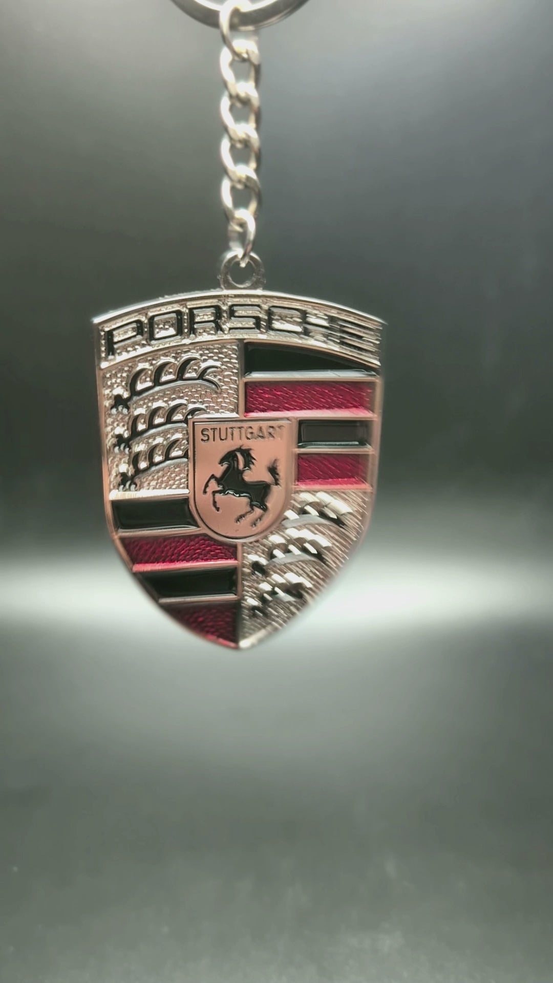 Carry a symbol of precision engineering and automotive excellence with this iconic Porsche shied. Featuring the legendary Porsche crest with its proud rearing horse from Stuttgart, this double-sided metal keychain embodies the rich heritage and uncompromising performance of the marque.