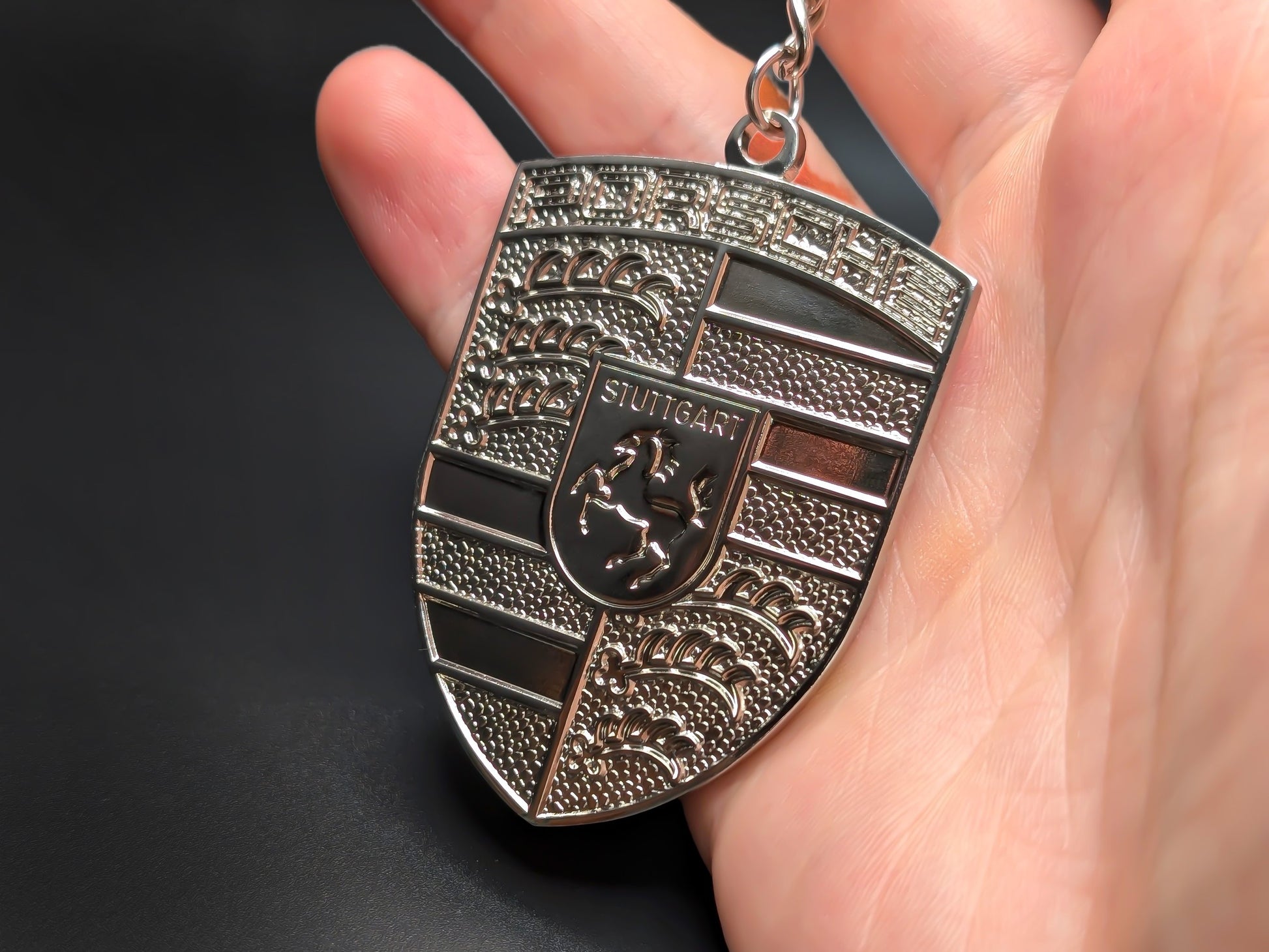 - Double-Sided Design: Iconic Metallic Porsche Crest
